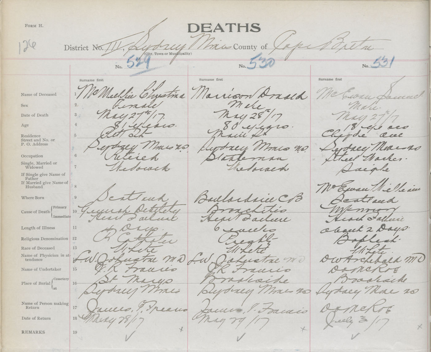 Death Registration: Year: 1917 book: 29 page: 126 number: 531