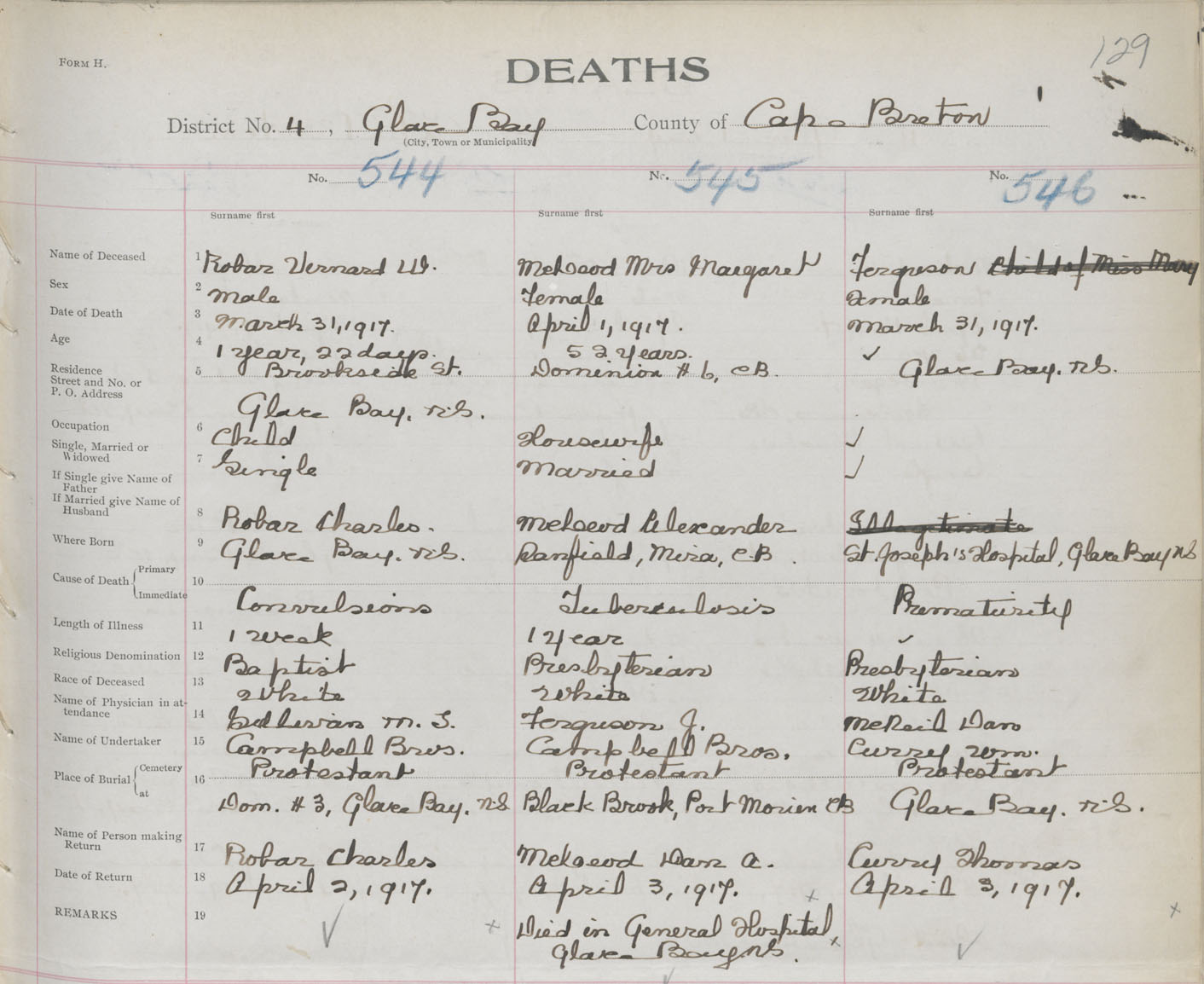 Death Registration: Year: 1917 book: 29 page: 129 number: 546
