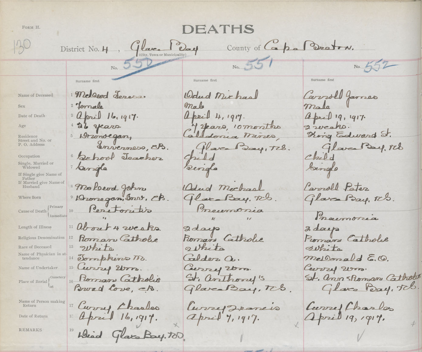 Death Registration: Year: 1917 book: 29 page: 130 number: 552