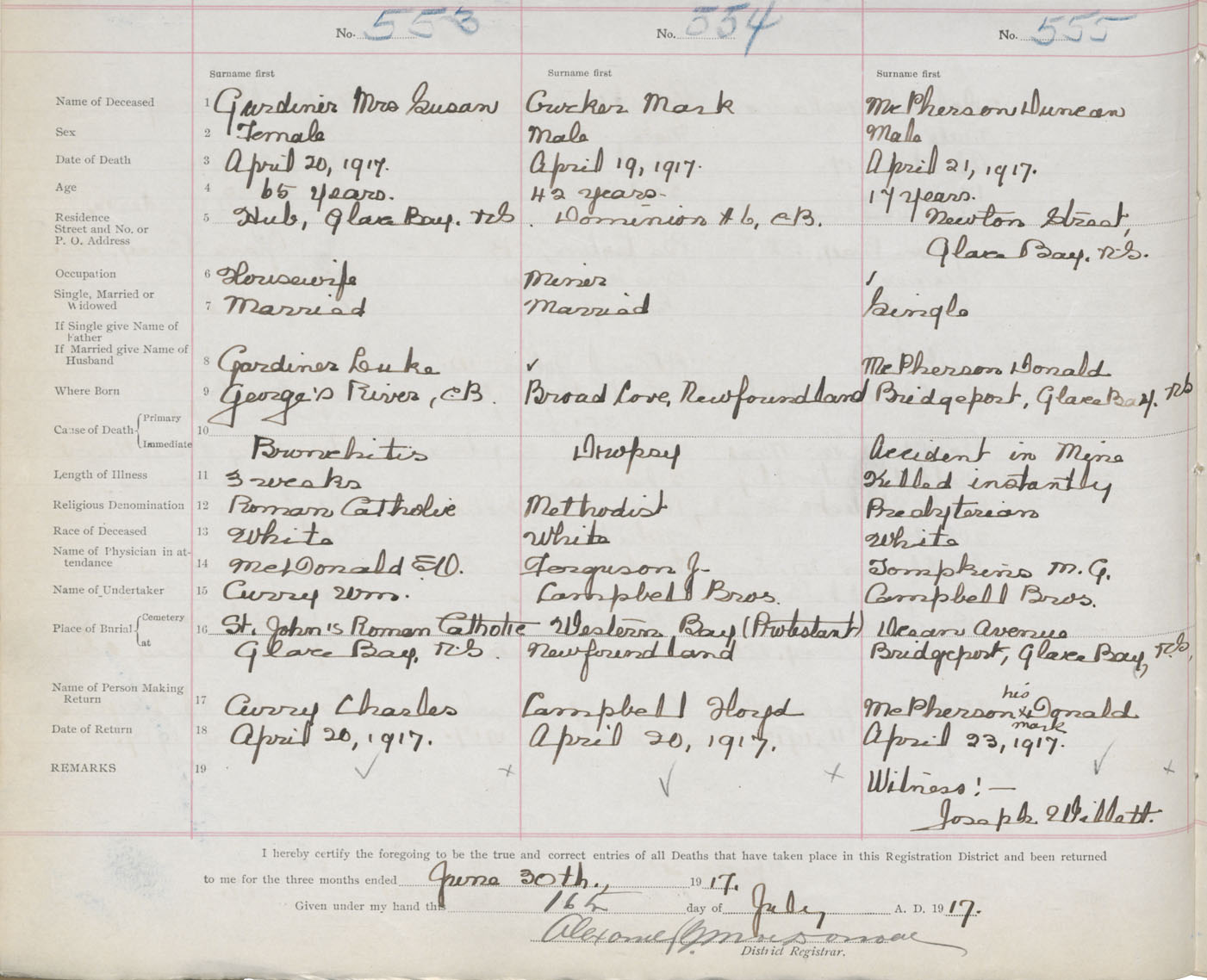 Death Registration: Year: 1917 book: 29 page: 130 number: 555