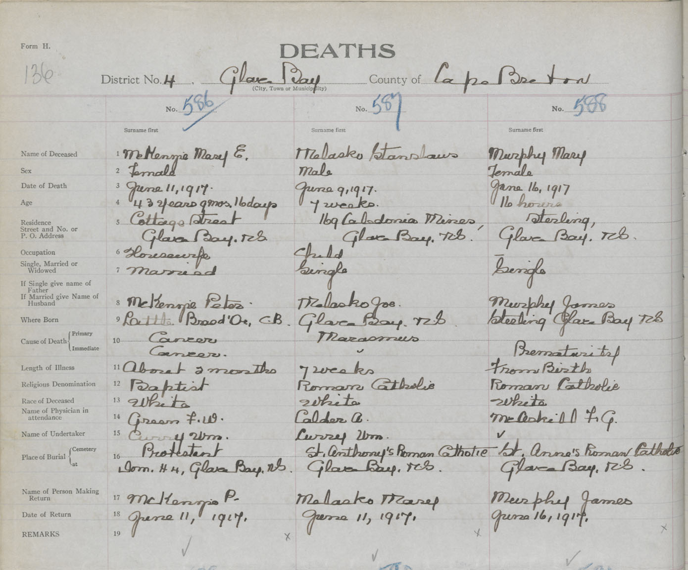 Death Registration: Year: 1917 book: 29 page: 136 number: 588