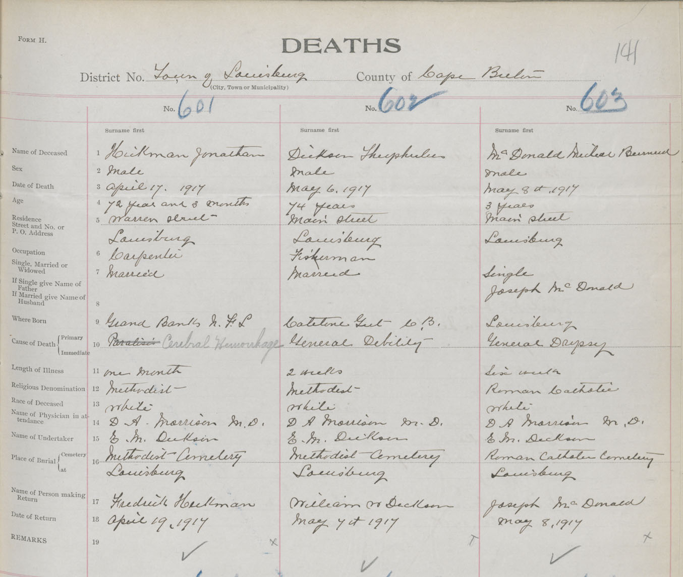 Death Registration: Year: 1917 book: 29 page: 141 number: 603
