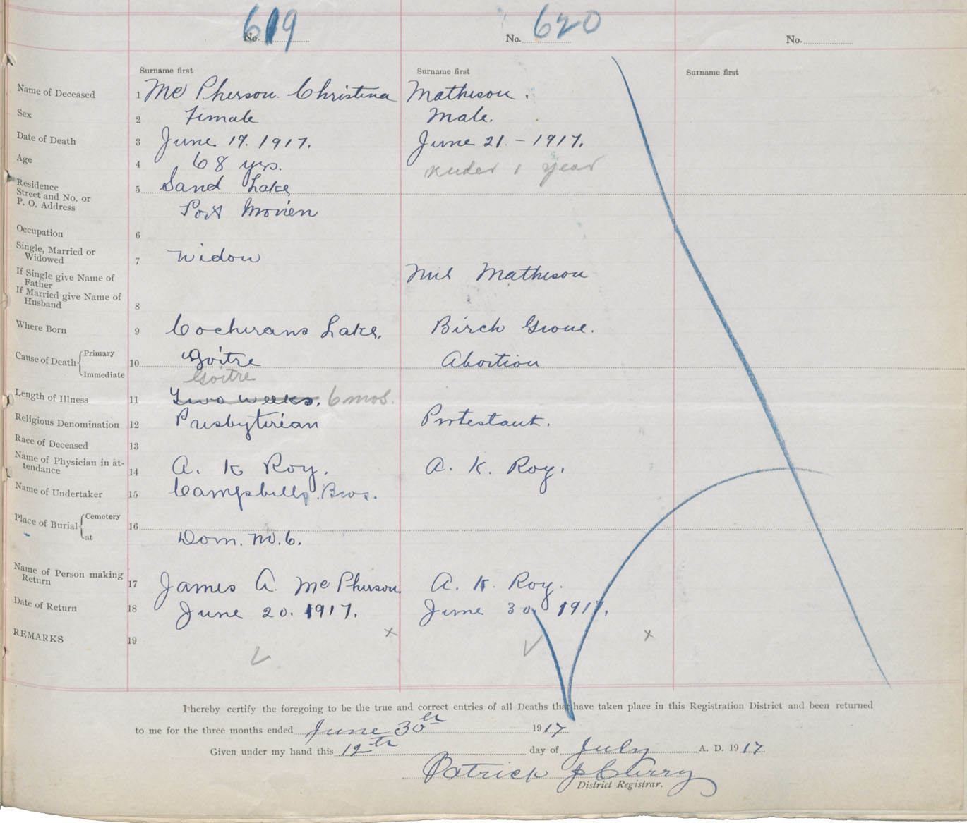 Male Death Registration: Year: 1917 book: 29 page: 147 number: 620