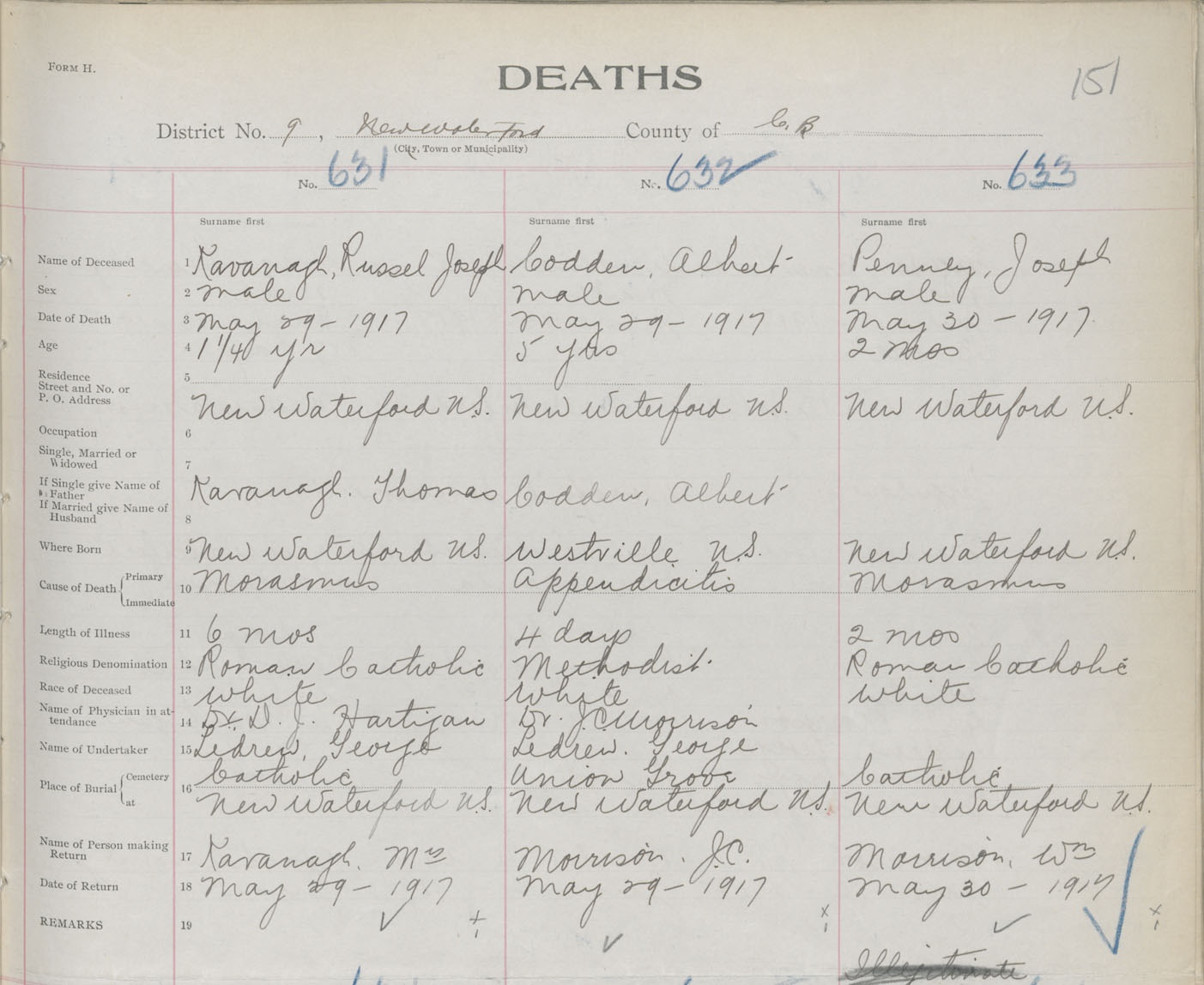 Death Registration: Year: 1917 book: 29 page: 151 number: 631