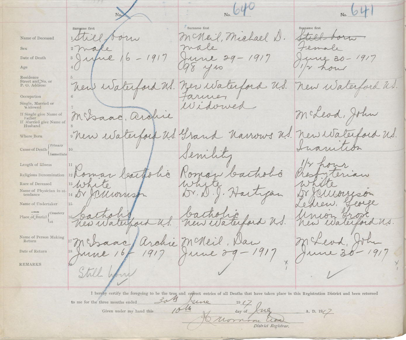 Male Death Registration: Year: 1917 book: 29 page: 152 number: 640