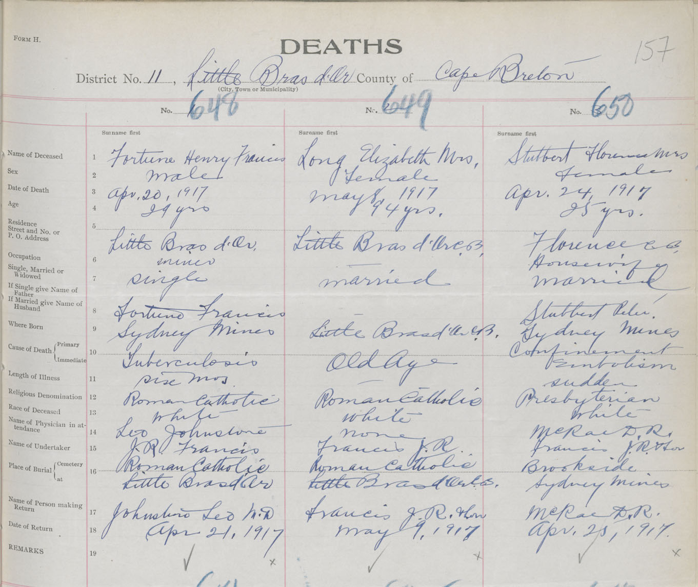 Death Registration: Year: 1917 book: 29 page: 157 number: 648