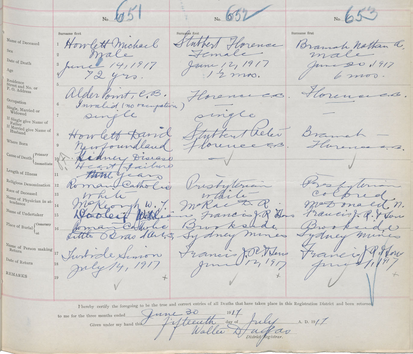 Death Registration: Year: 1917 book: 29 page: 157 number: 651