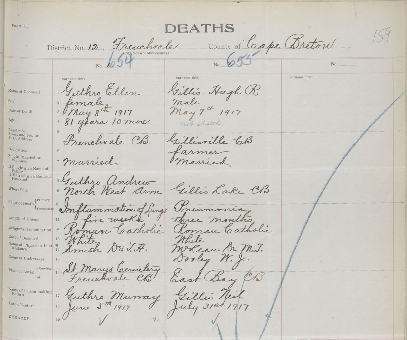 Death Registration: Year: 1917 book: 29 page: 159 number: 654
