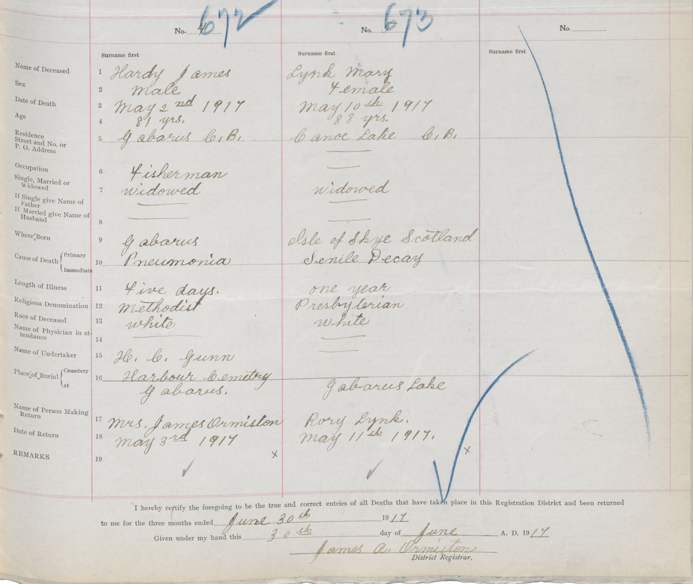 Death Registration: Year: 1917 book: 29 page: 173 number: 672