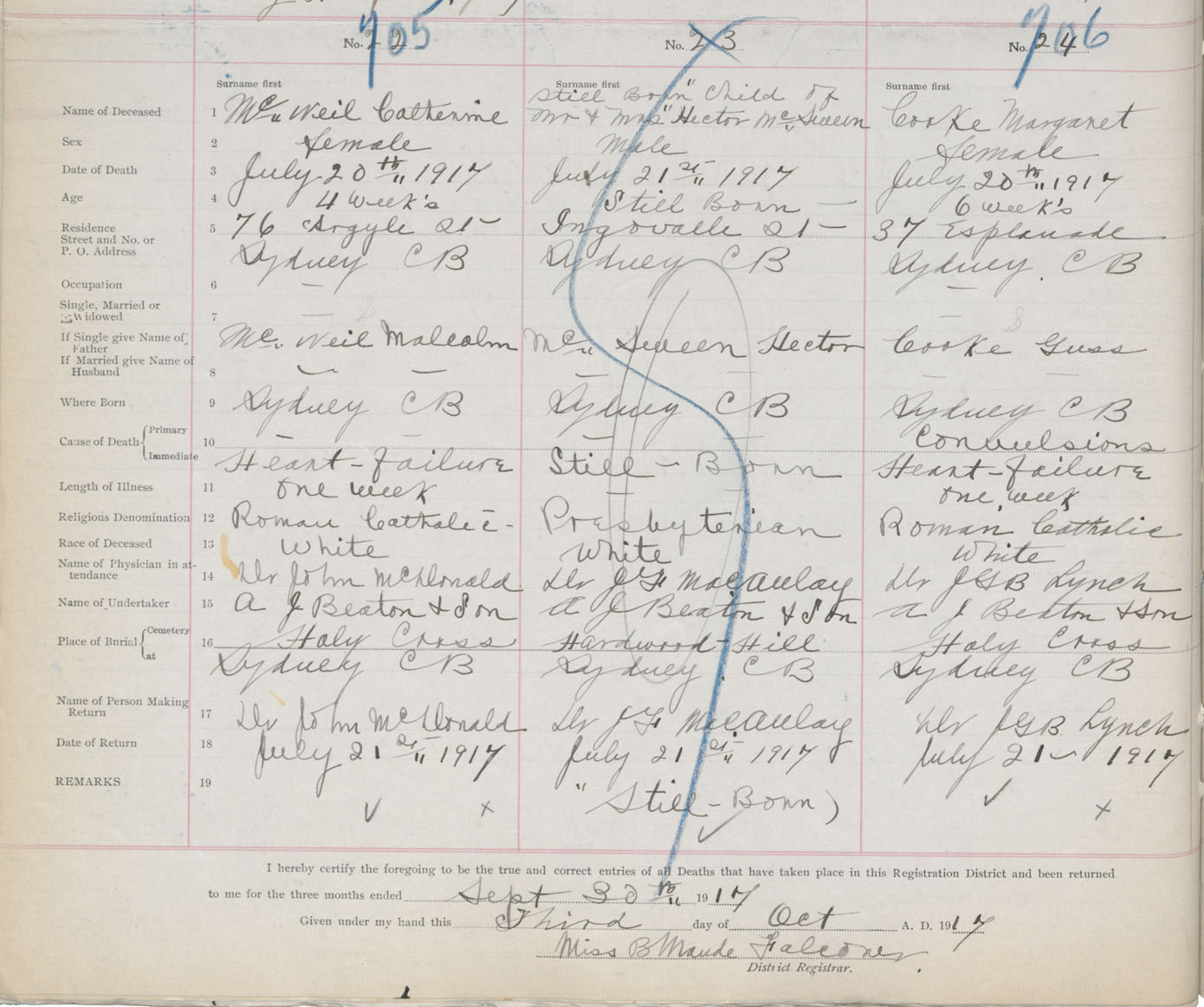 Death Registration: Year: 1917 book: 29 page: 182 number: 705