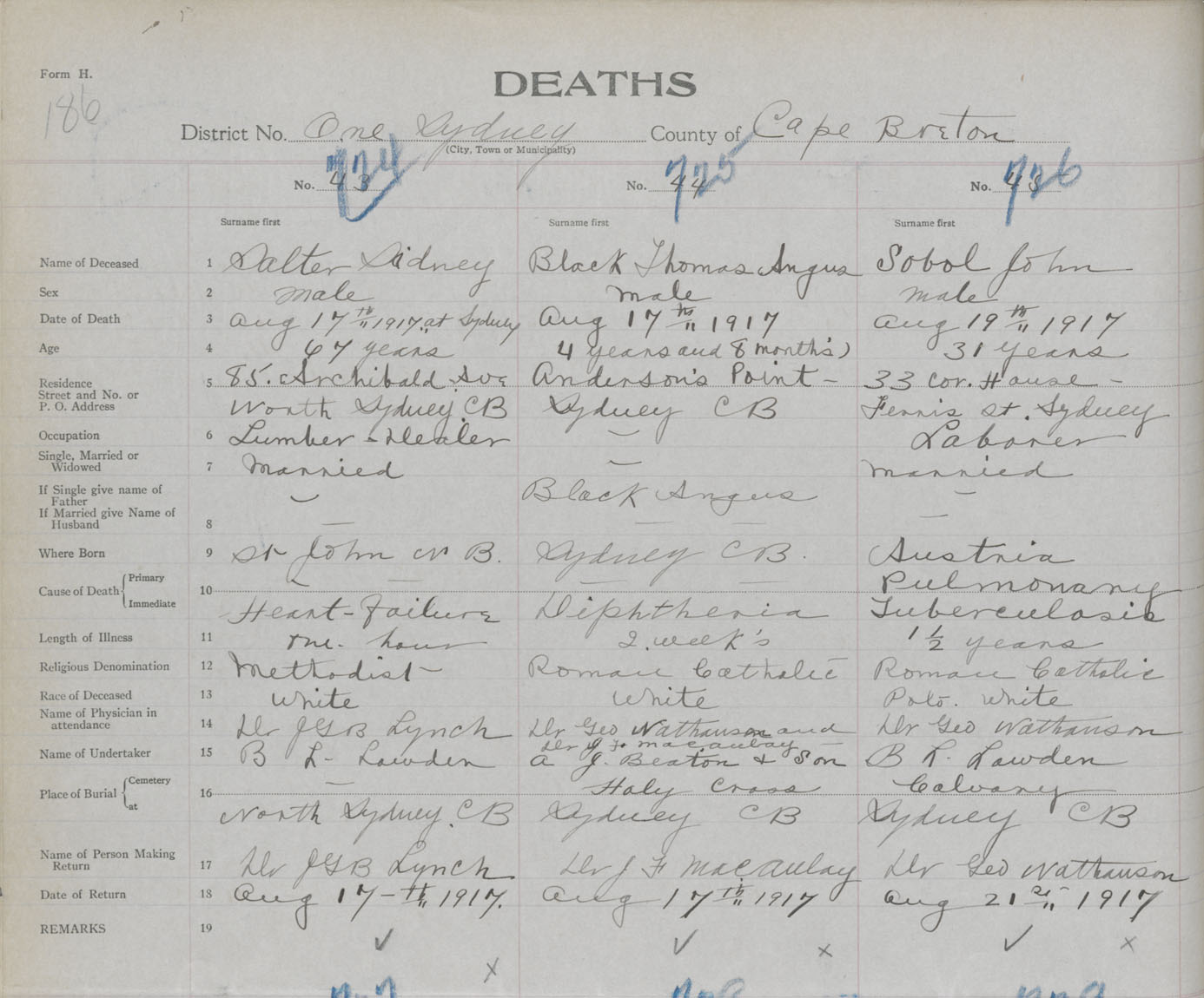 Death Registration: Year: 1917 book: 29 page: 186 number: 724