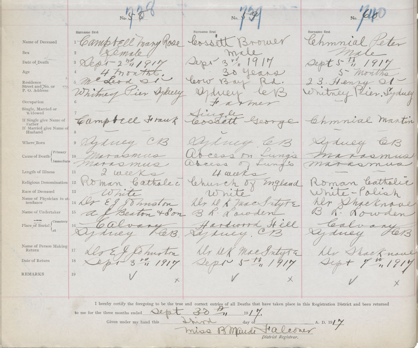 Death Registration: Year: 1917 book: 29 page: 188 number: 738