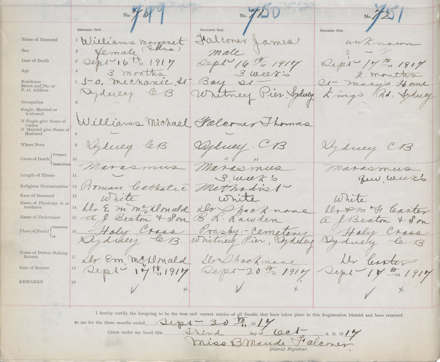 Death Registration: Year: 1917 book: 29 page: 190 number: 749