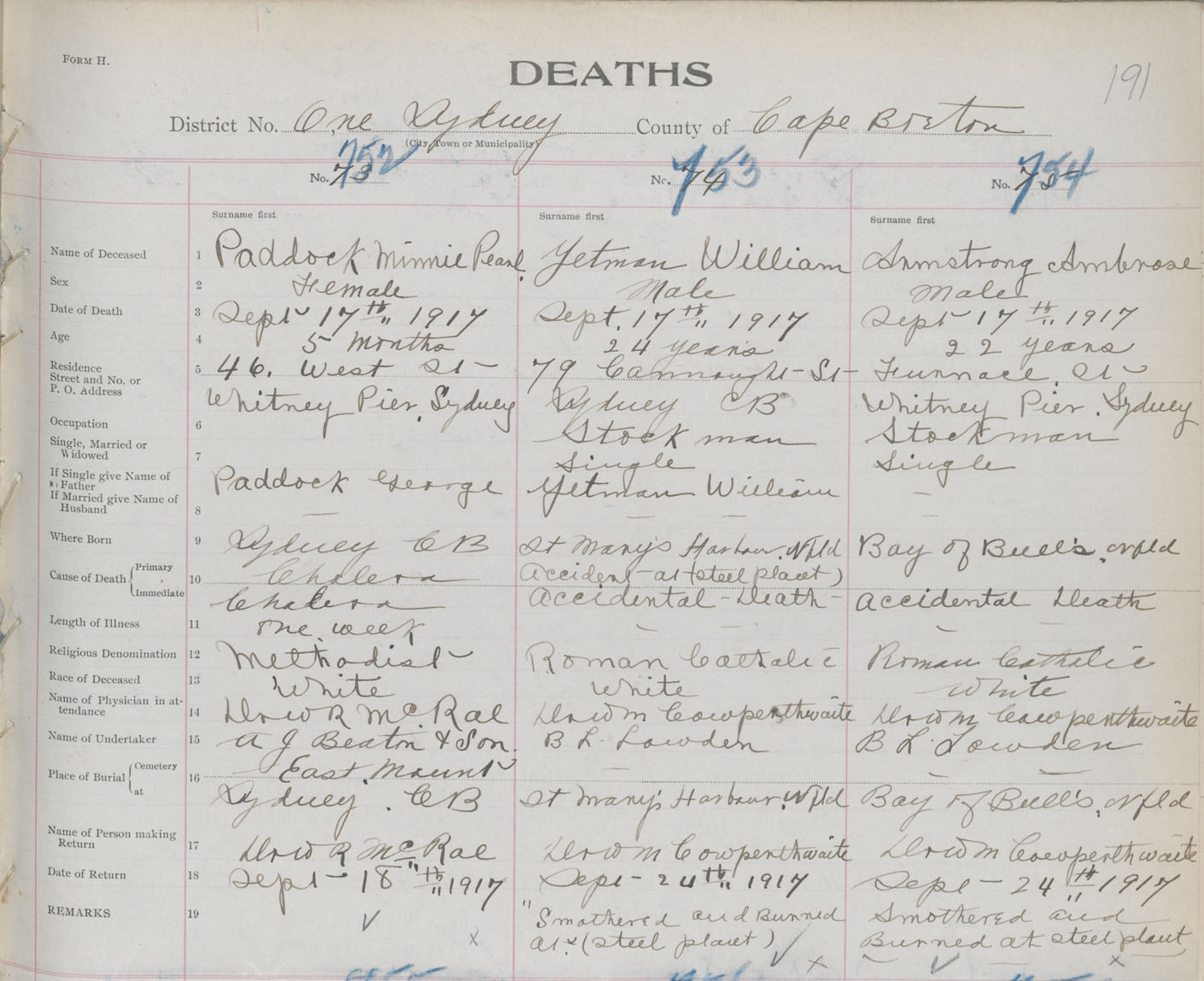 Death Registration: Year: 1917 book: 29 page: 191 number: 752
