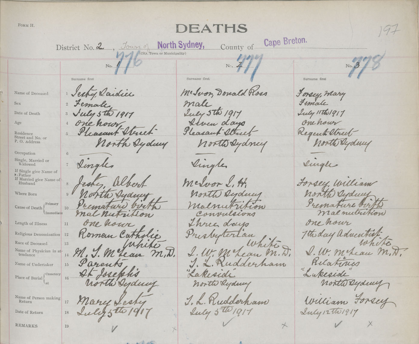 Death Registration: Year: 1917 book: 29 page: 197 number: 776