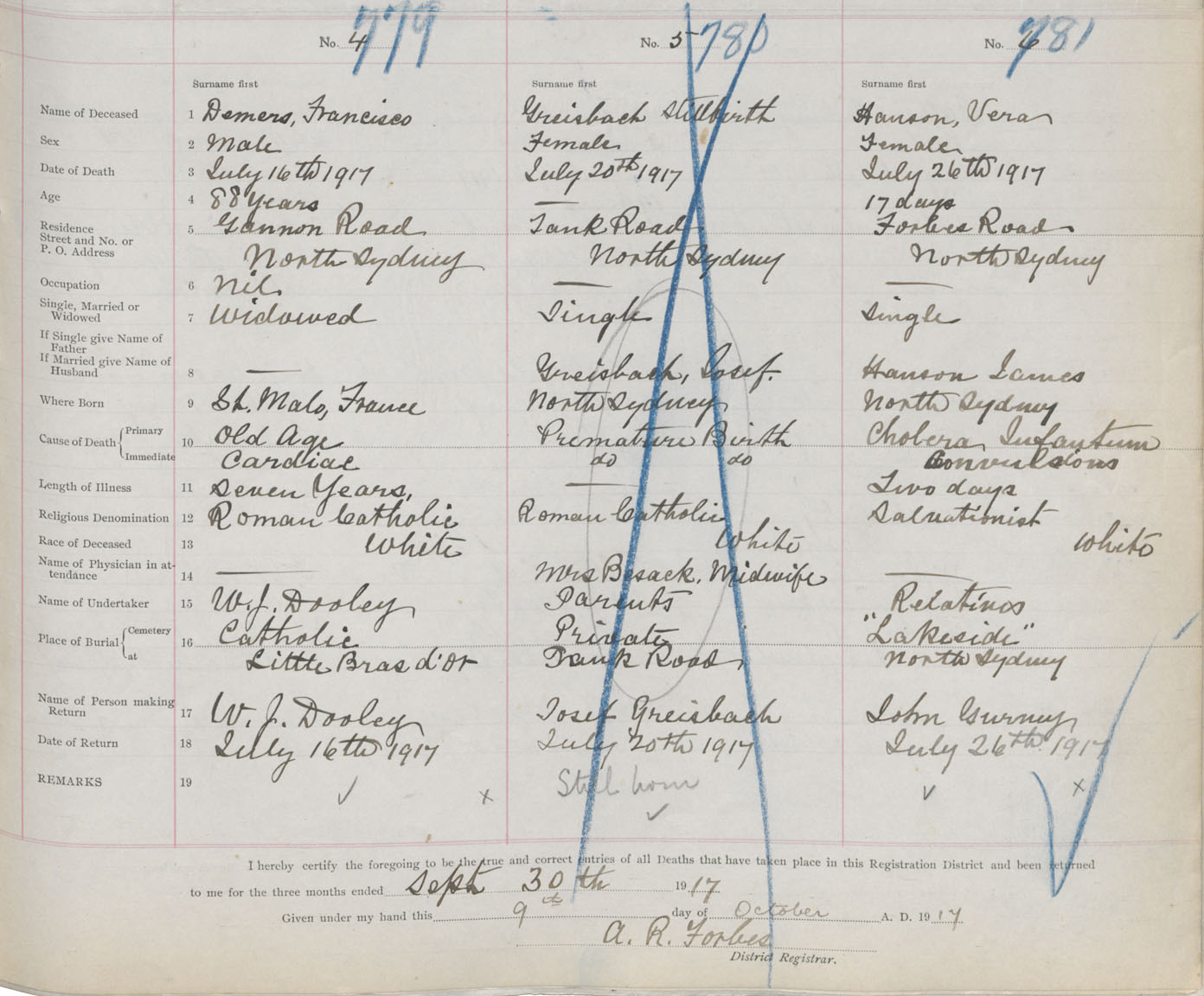 Death Registration: Year: 1917 book: 29 page: 197 number: 779