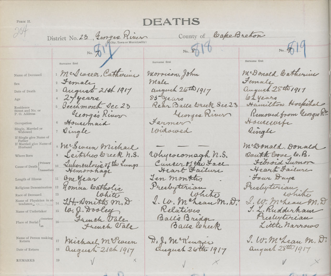 Death Registration: Year: 1917 book: 29 page: 204 number: 817