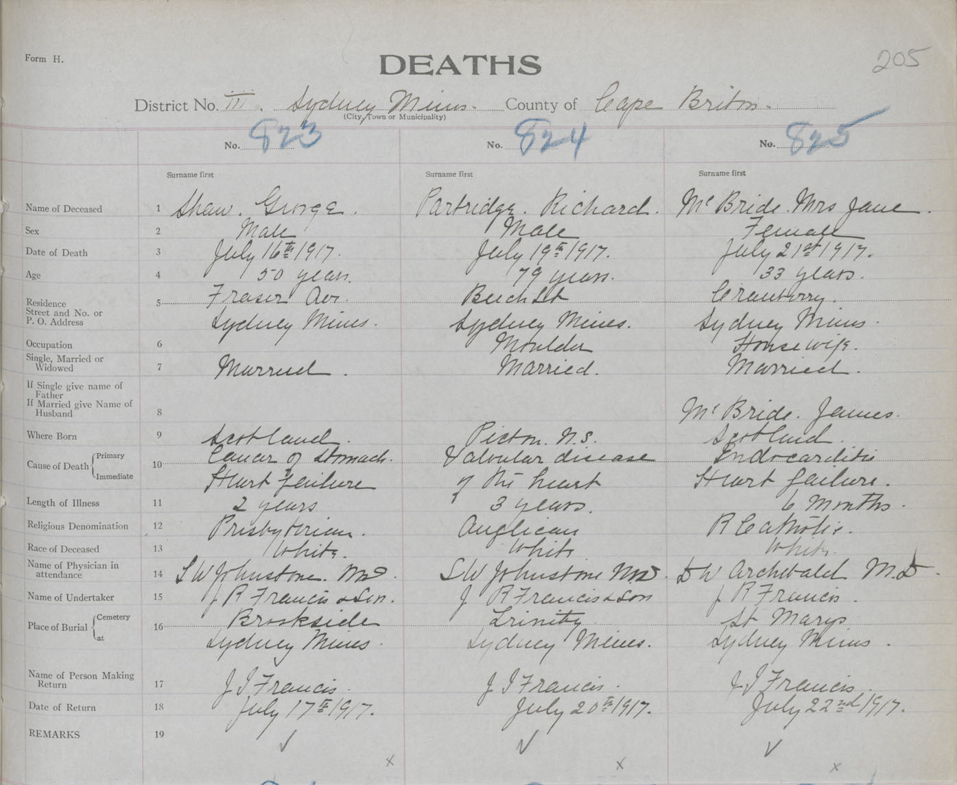 Death Registration: Year: 1917 book: 29 page: 205 number: 823