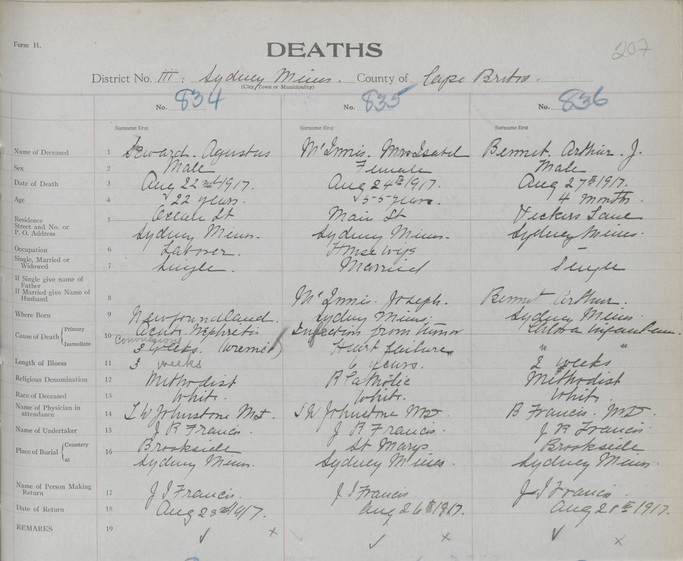 Death Registration: Year: 1917 book: 29 page: 207 number: 834
