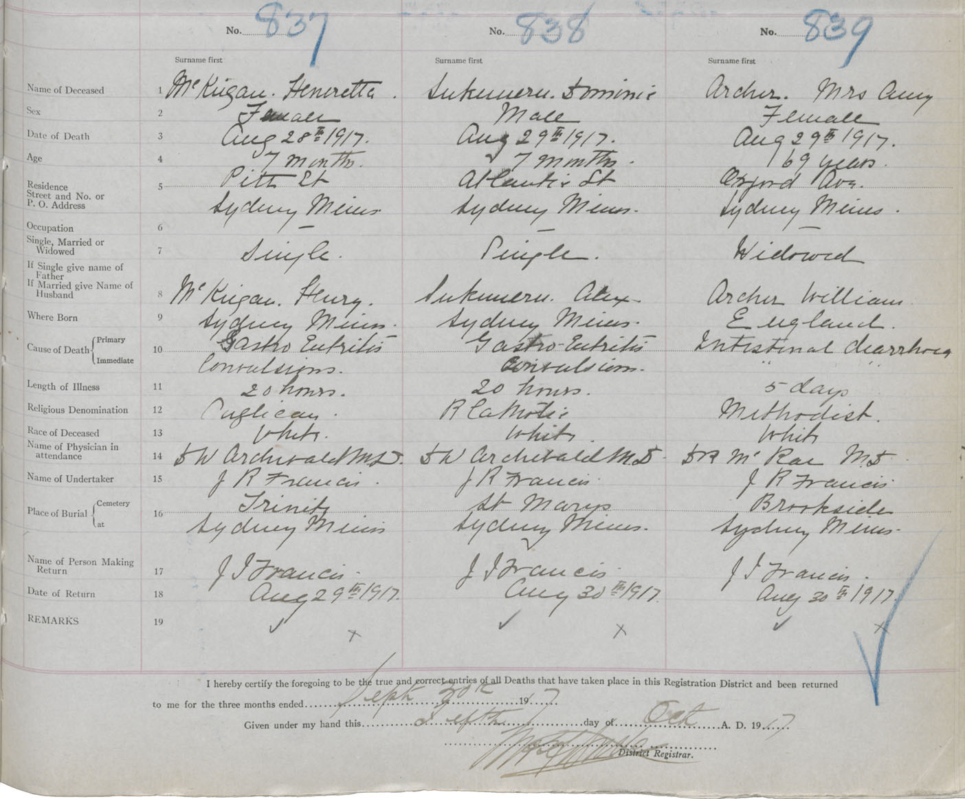 Death Registration: Year: 1917 book: 29 page: 207 number: 837
