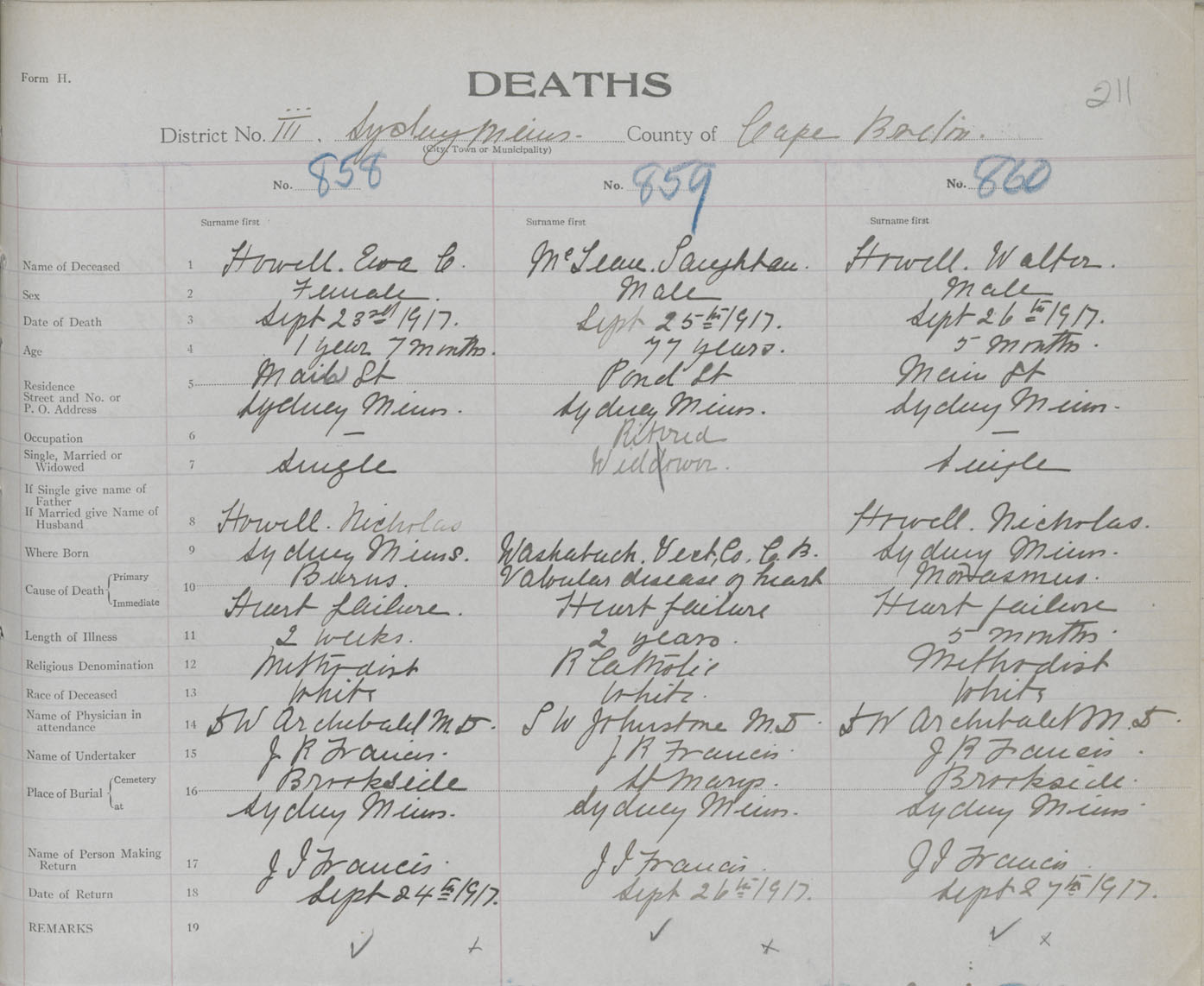 Death Registration: Year: 1917 book: 29 page: 211 number: 860