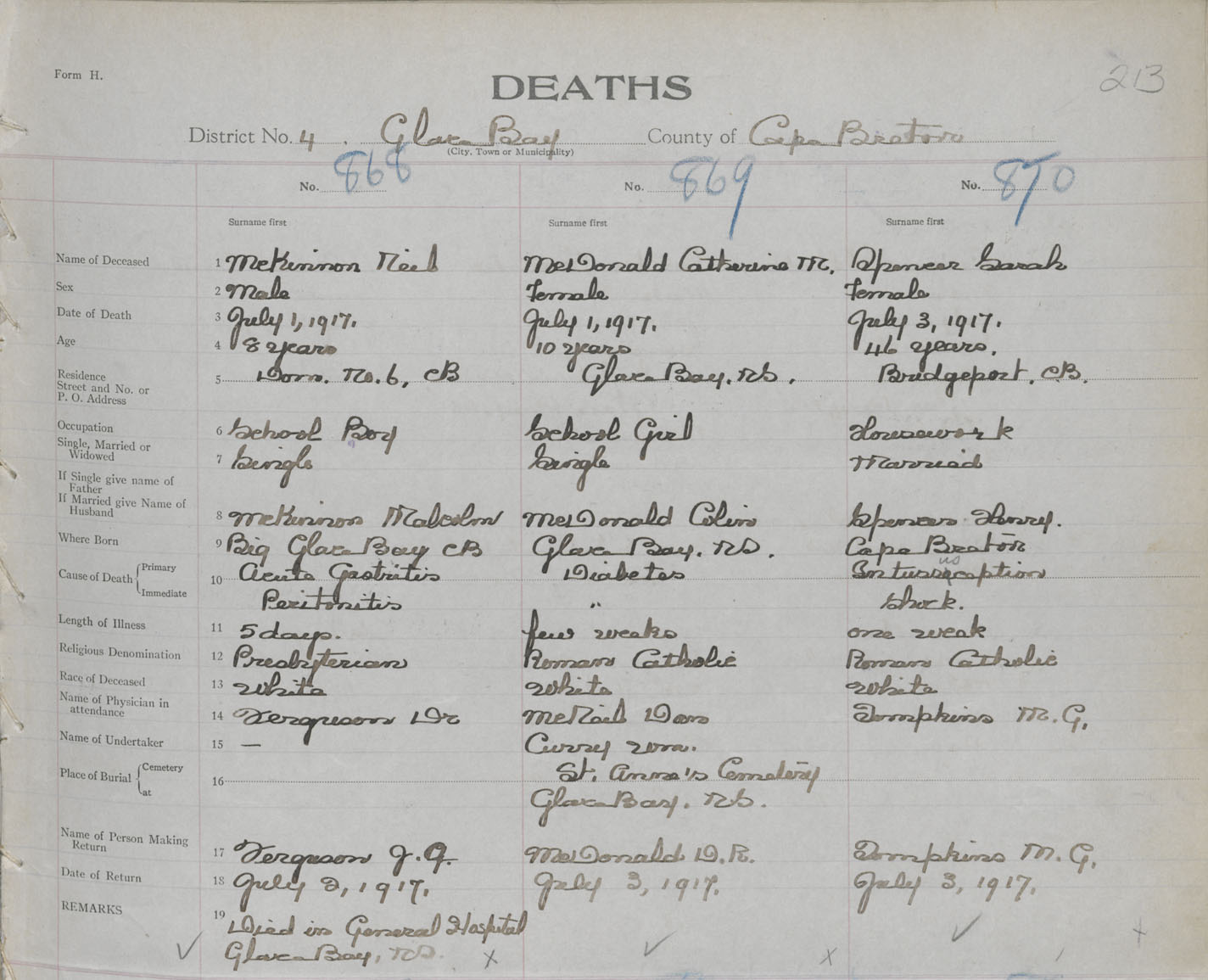 Death Registration: Year: 1917 book: 29 page: 213 number: 870
