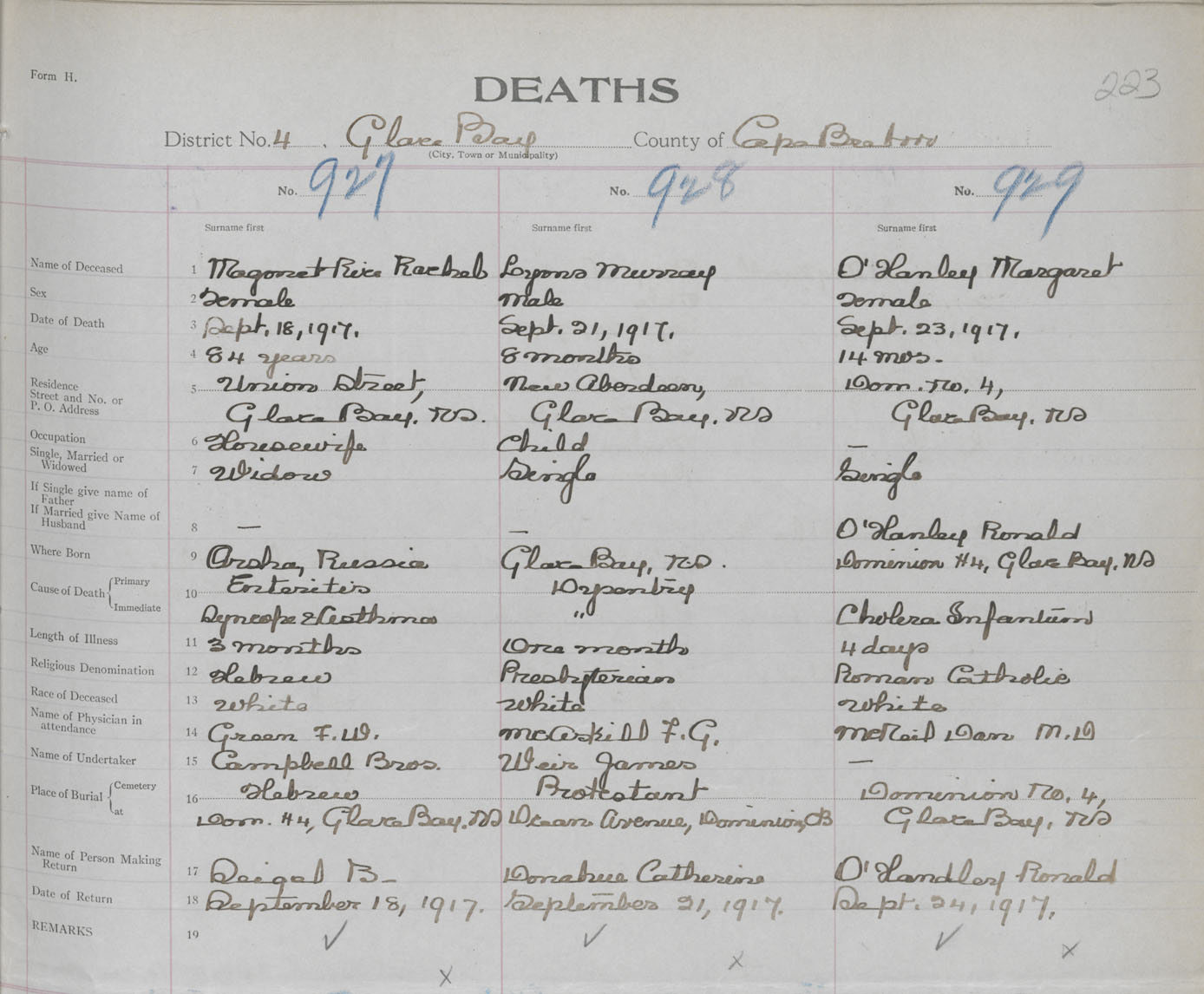 Death Registration: Year: 1917 book: 29 page: 223 number: 929
