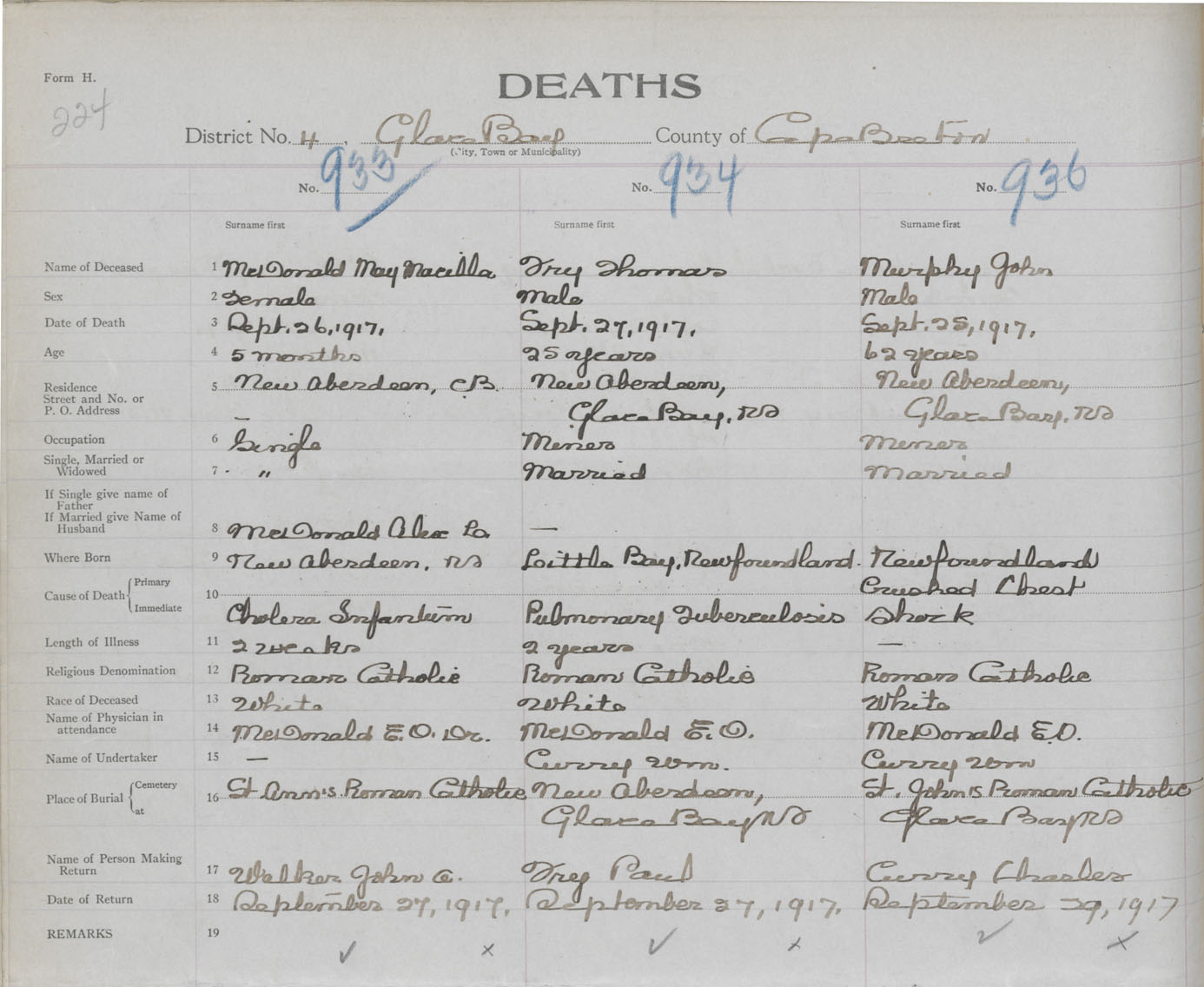 Death Registration: Year: 1917 book: 29 page: 224 number: 936