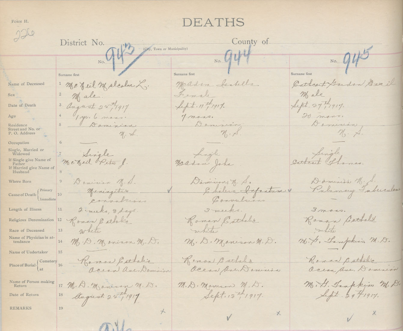 Death Registration: Year: 1917 book: 29 page: 226 number: 945