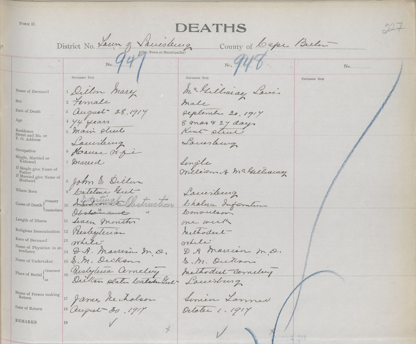 Death Registration: Year: 1917 book: 29 page: 227 number: 948