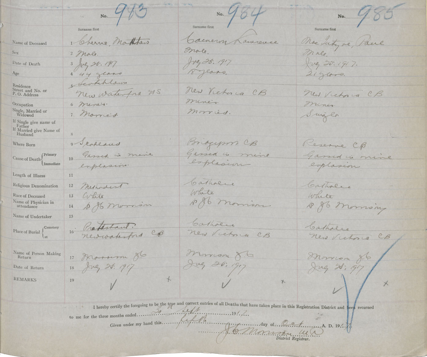 Death Registration: Year: 1917 book: 29 page: 239 number: 985