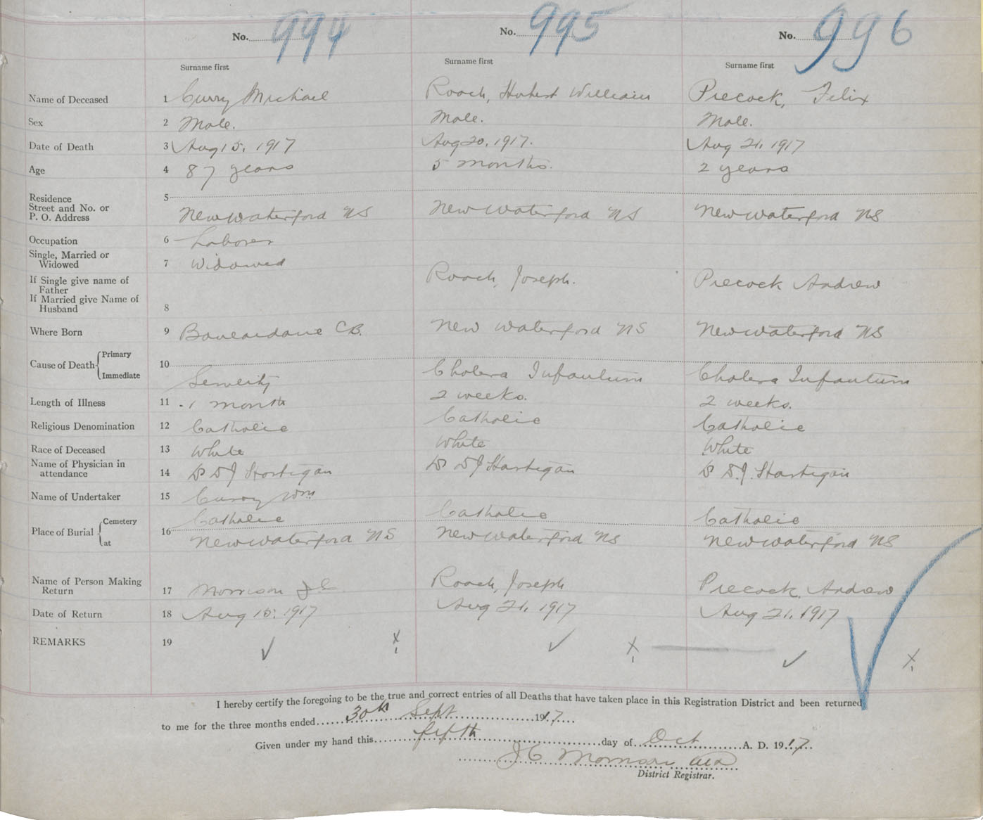 Death Registration: Year: 1917 book: 29 page: 241 number: 996