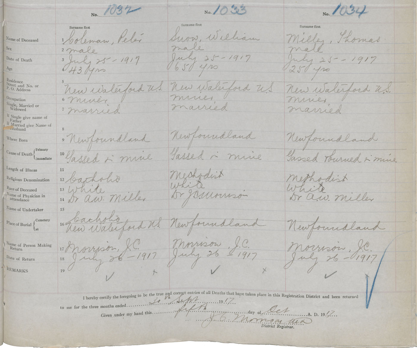 Death Registration: Year: 1917 book: 29 page: 249 number: 1032