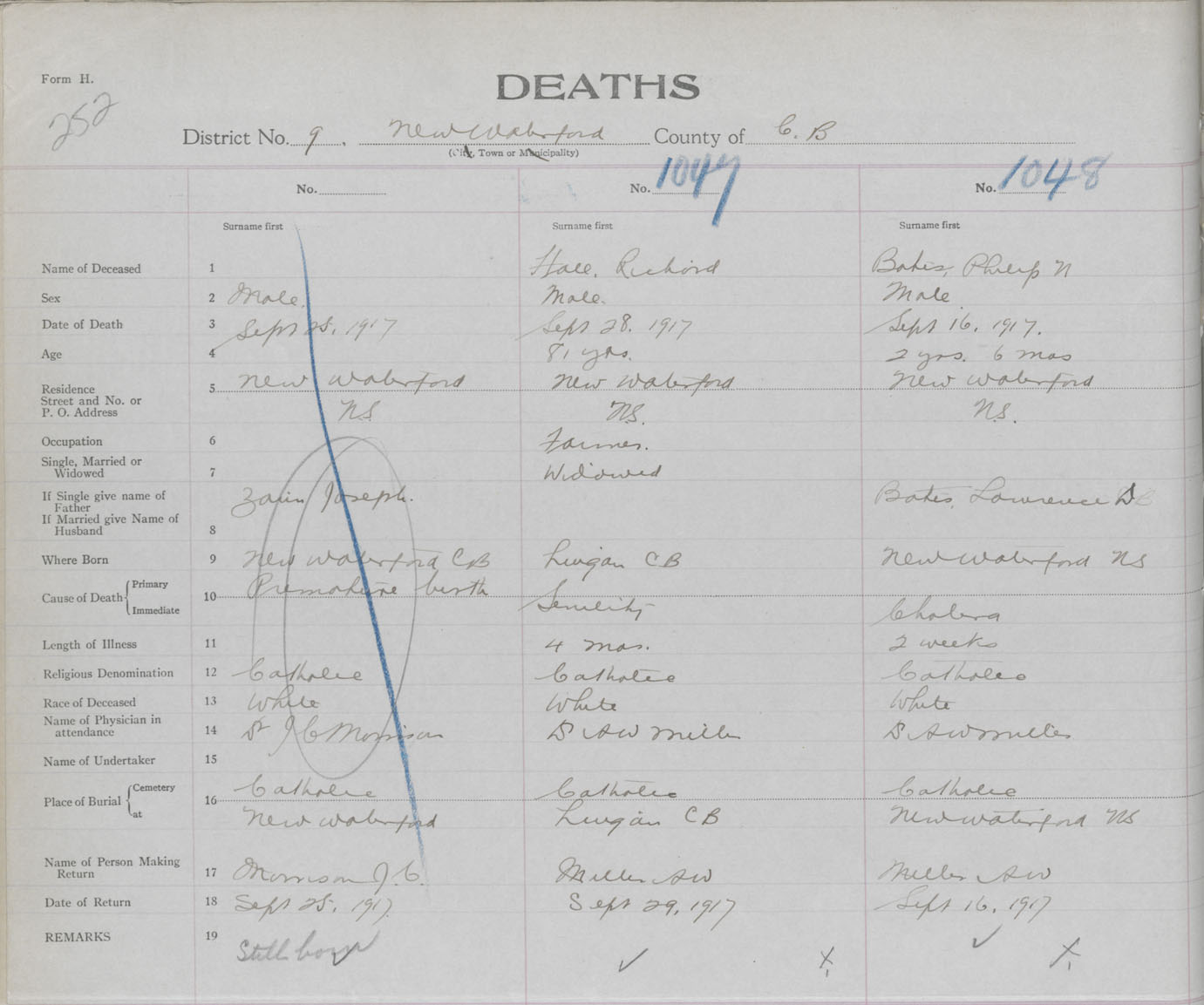 Death Registration: Year: 1917 book: 29 page: 252 number: 1047