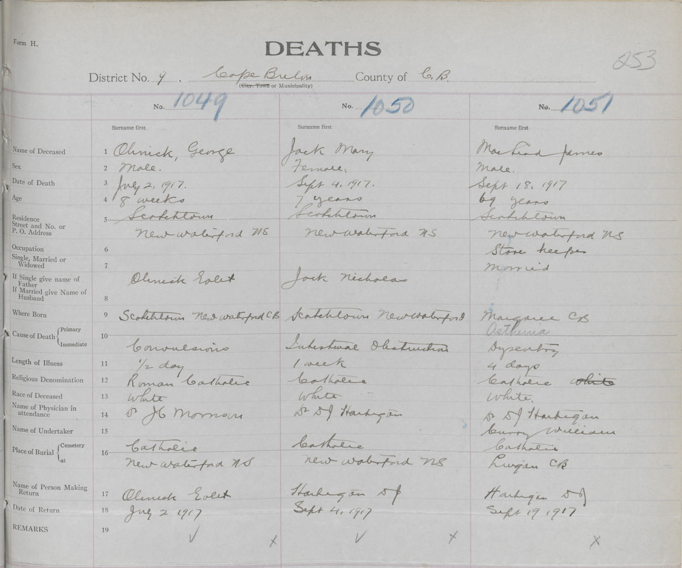 Death Registration: Year: 1917 book: 29 page: 253 number: 1049
