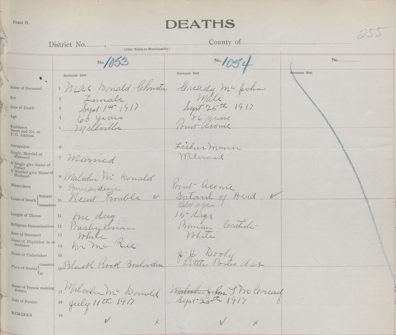 Death Registration: Year: 1917 book: 29 page: 255 number: 1054