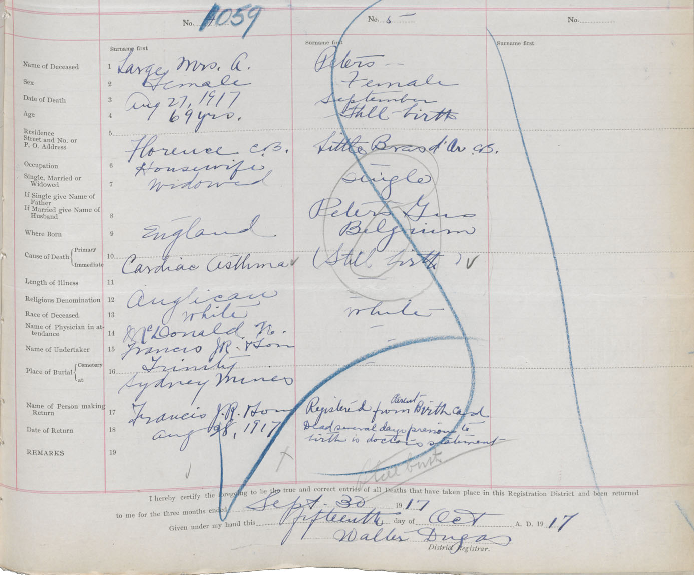 Death Registration: Year: 1917 book: 29 page: 257 number: 1059