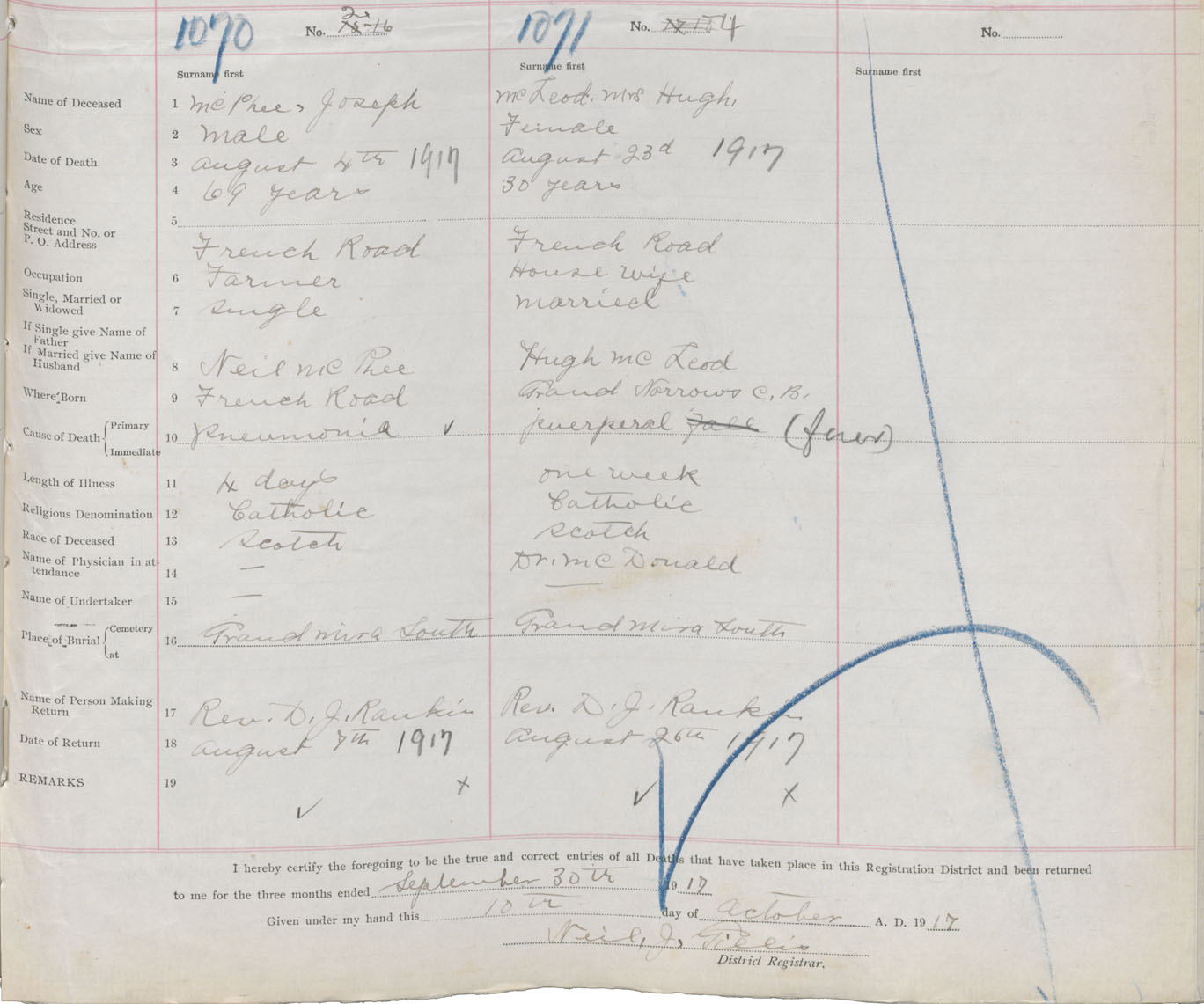 Death Registration: Year: 1917 book: 29 page: 267 number: 1071
