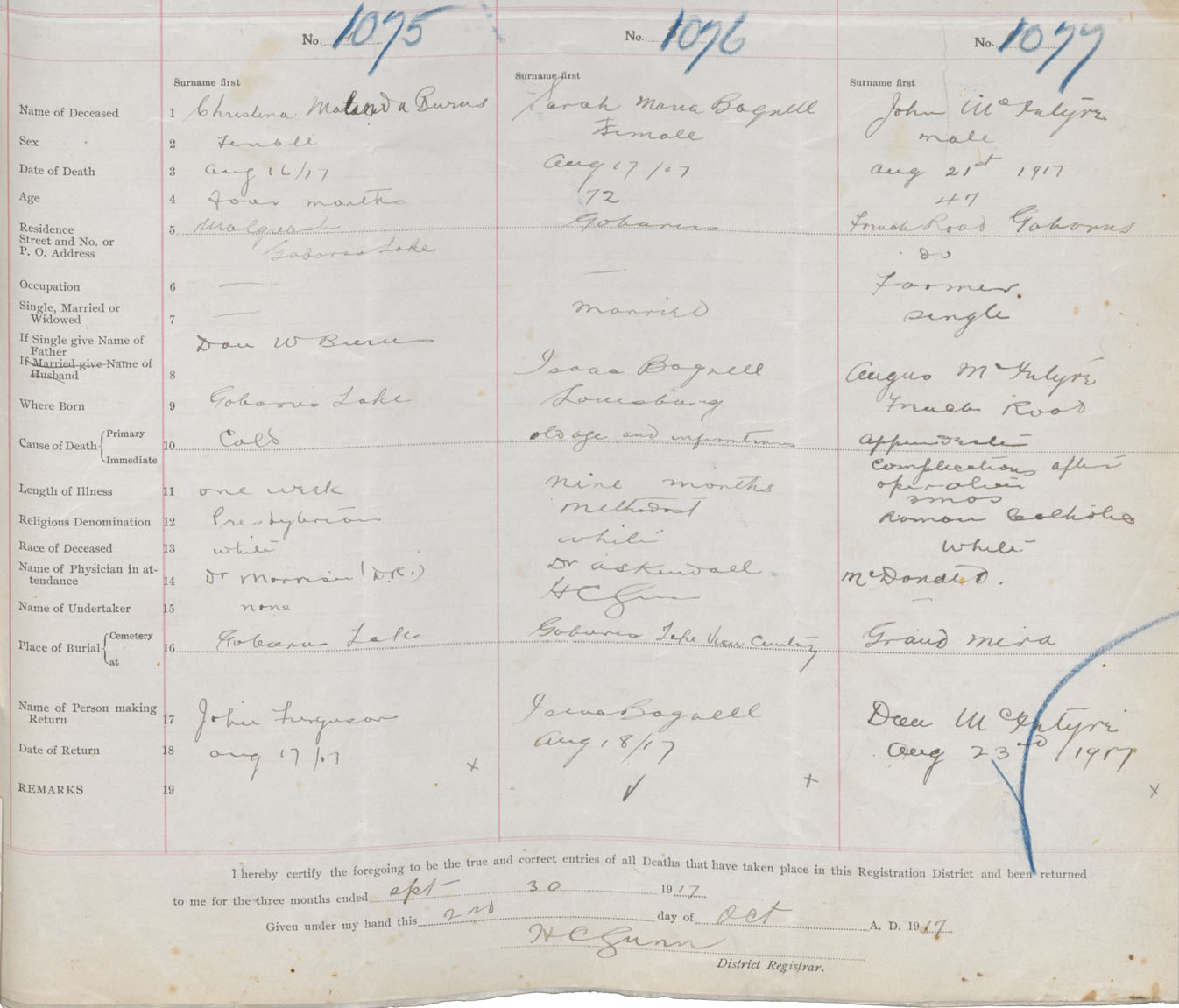 Death Registration: Year: 1917 book: 29 page: 269 number: 1077