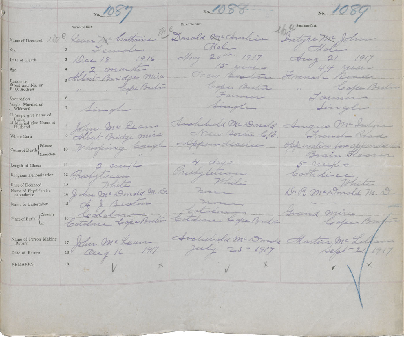 Death Registration: Year: 1917 book: 29 page: 271 number: 1089
