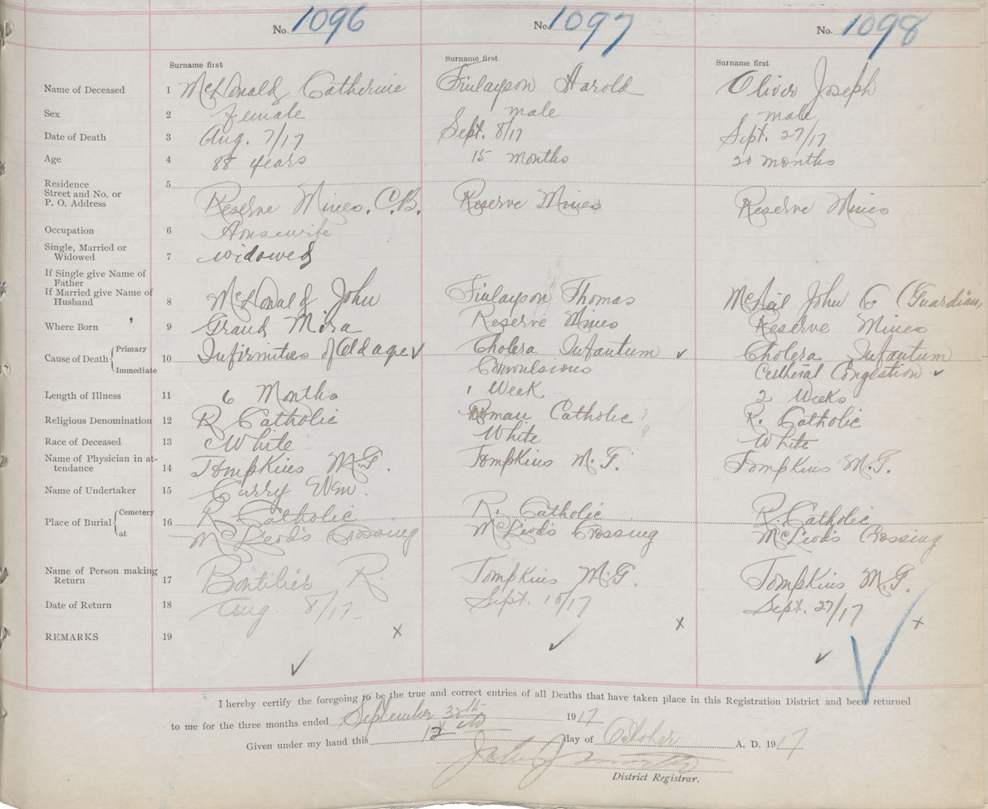 Death Registration: Year: 1917 book: 29 page: 273 number: 1098
