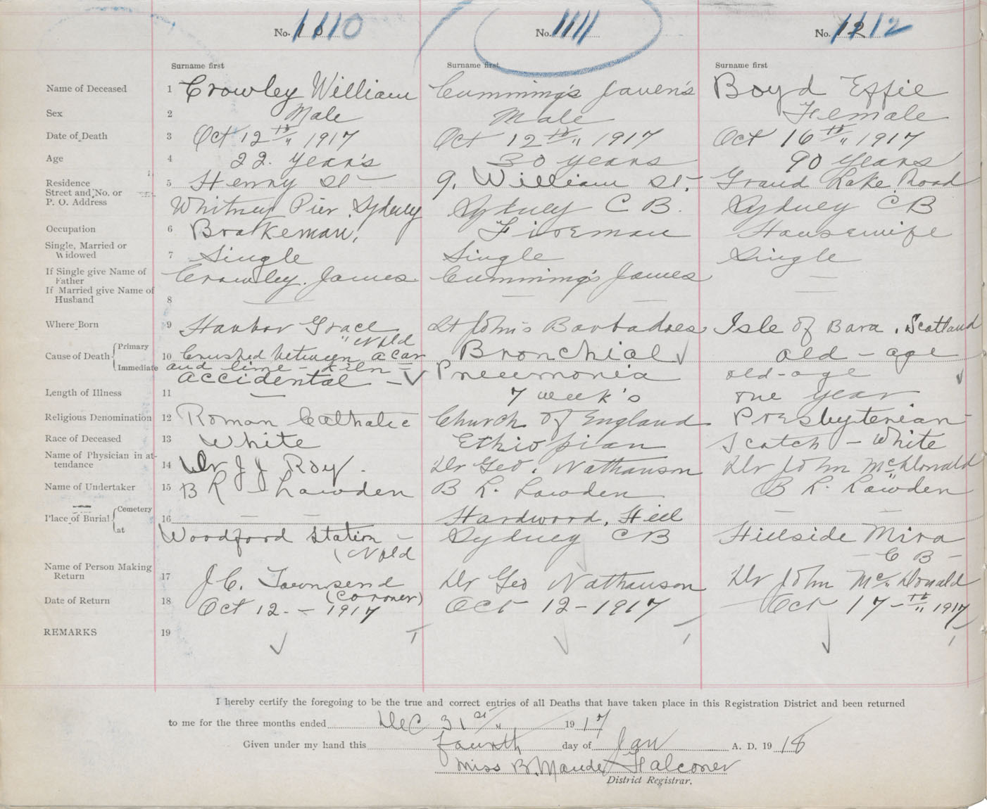 Death Registration: Year: 1917 book: 29 page: 278 number: 1110