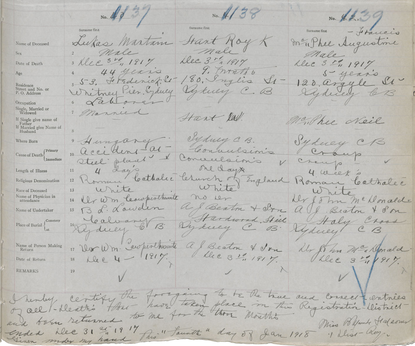 Death Registration: Year: 1917 book: 29 page: 283 number: 1137
