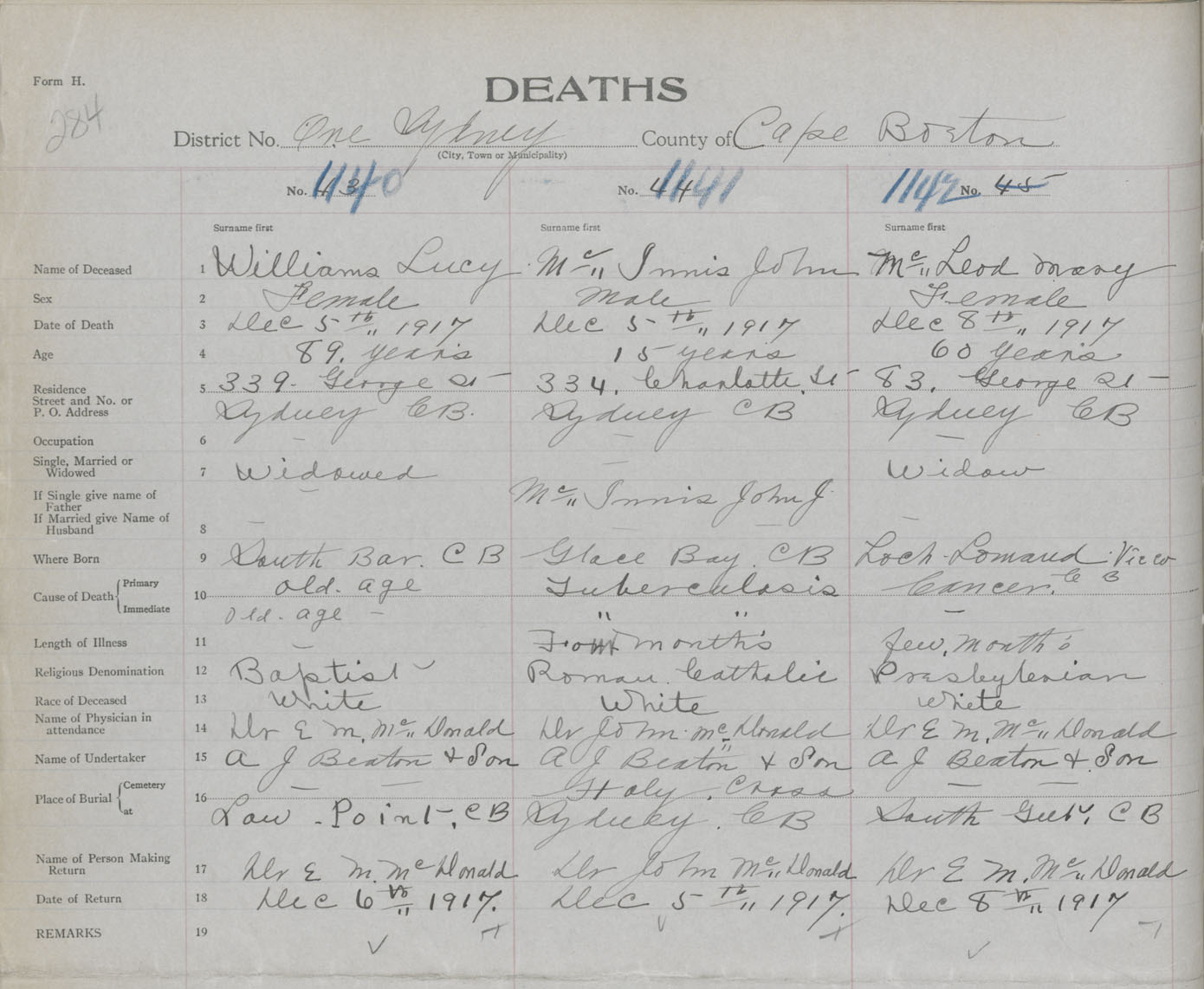 Death Registration: Year: 1917 book: 29 page: 284 number: 1140