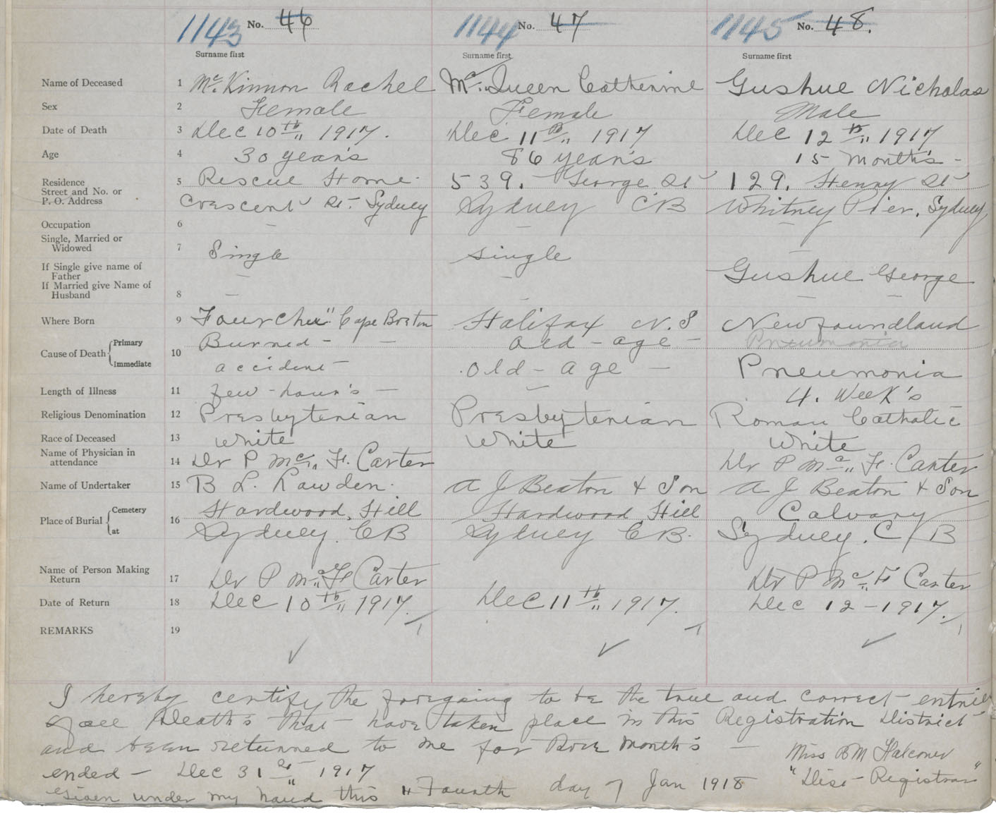 Death Registration: Year: 1917 book: 29 page: 284 number: 1143