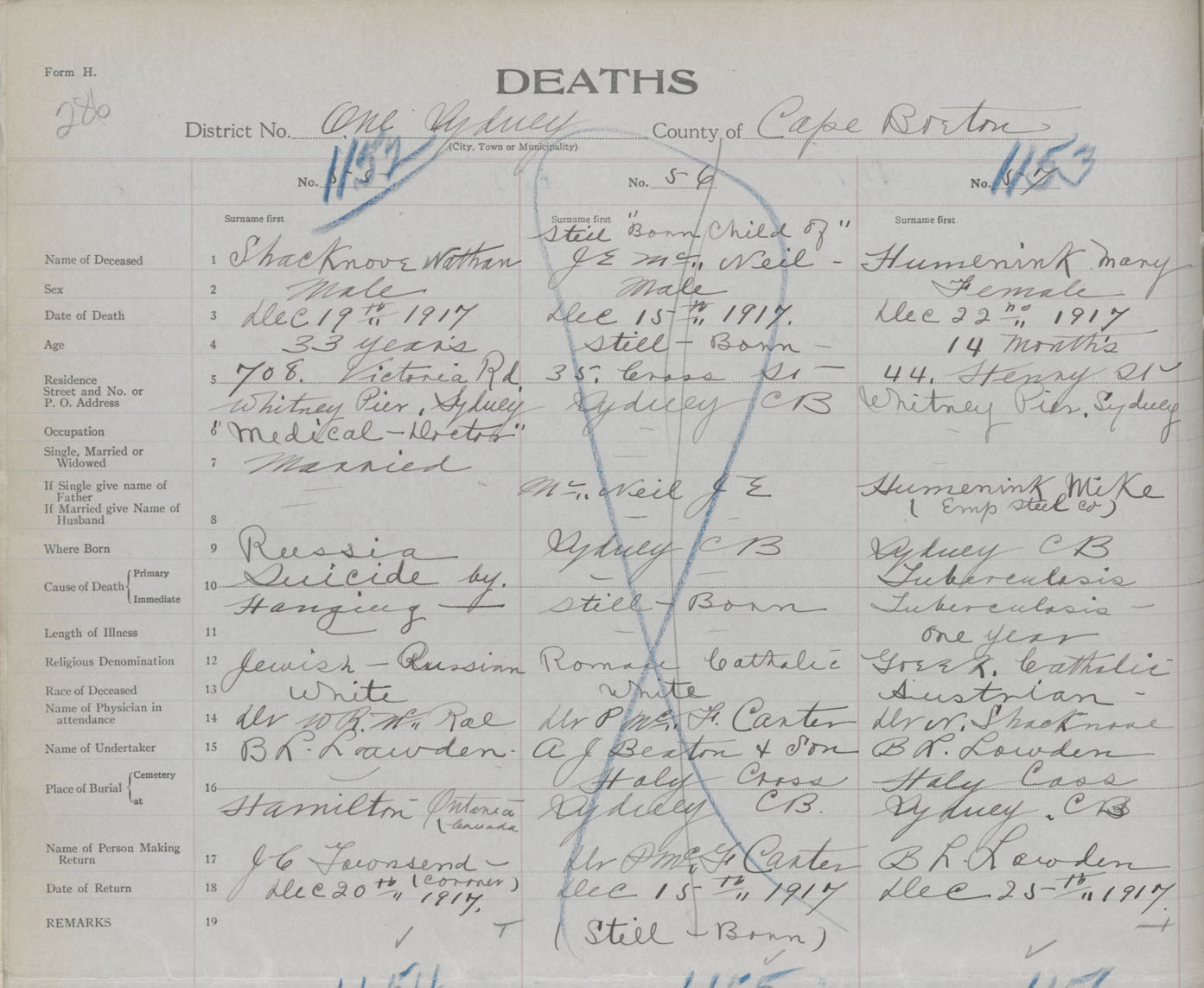Death Registration: Year: 1917 book: 29 page: 286 number: 1152