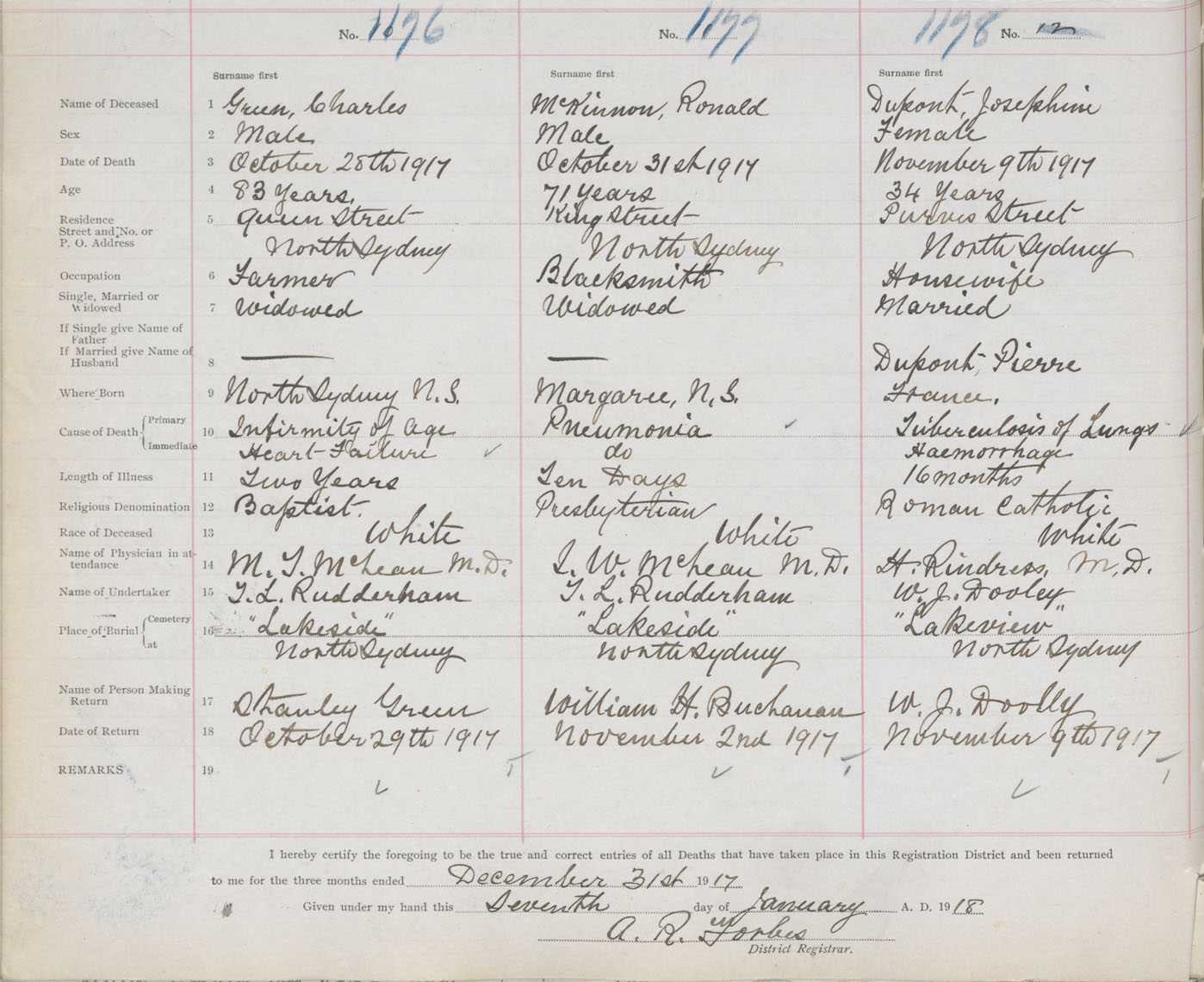 Death Registration: Year: 1917 book: 29 page: 290 number: 1176