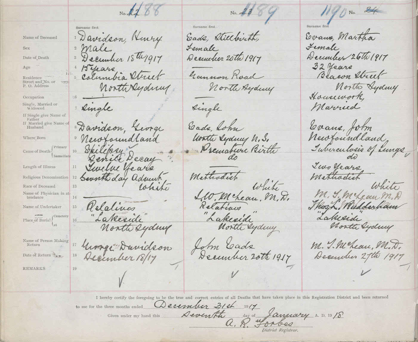 Death Registration: Year: 1917 book: 29 page: 292 number: 1188