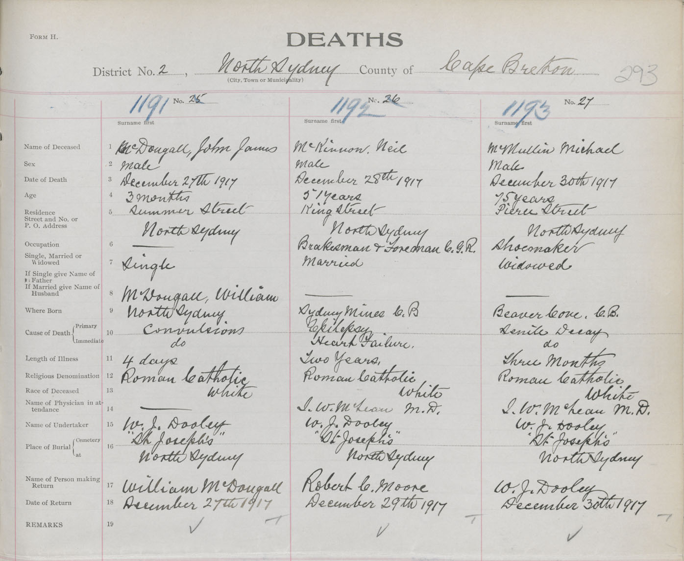 Death Registration: Year: 1917 book: 29 page: 293 number: 1191
