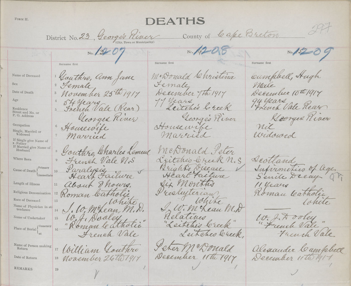 Death Registration: Year: 1917 book: 29 page: 297 number: 1207